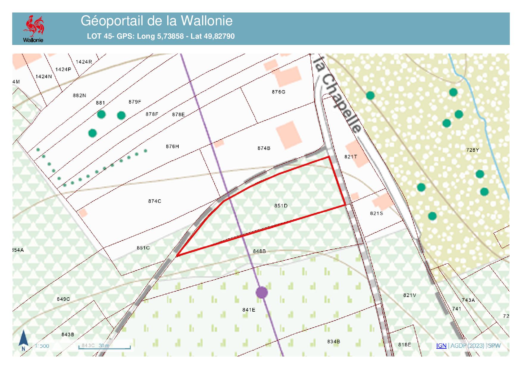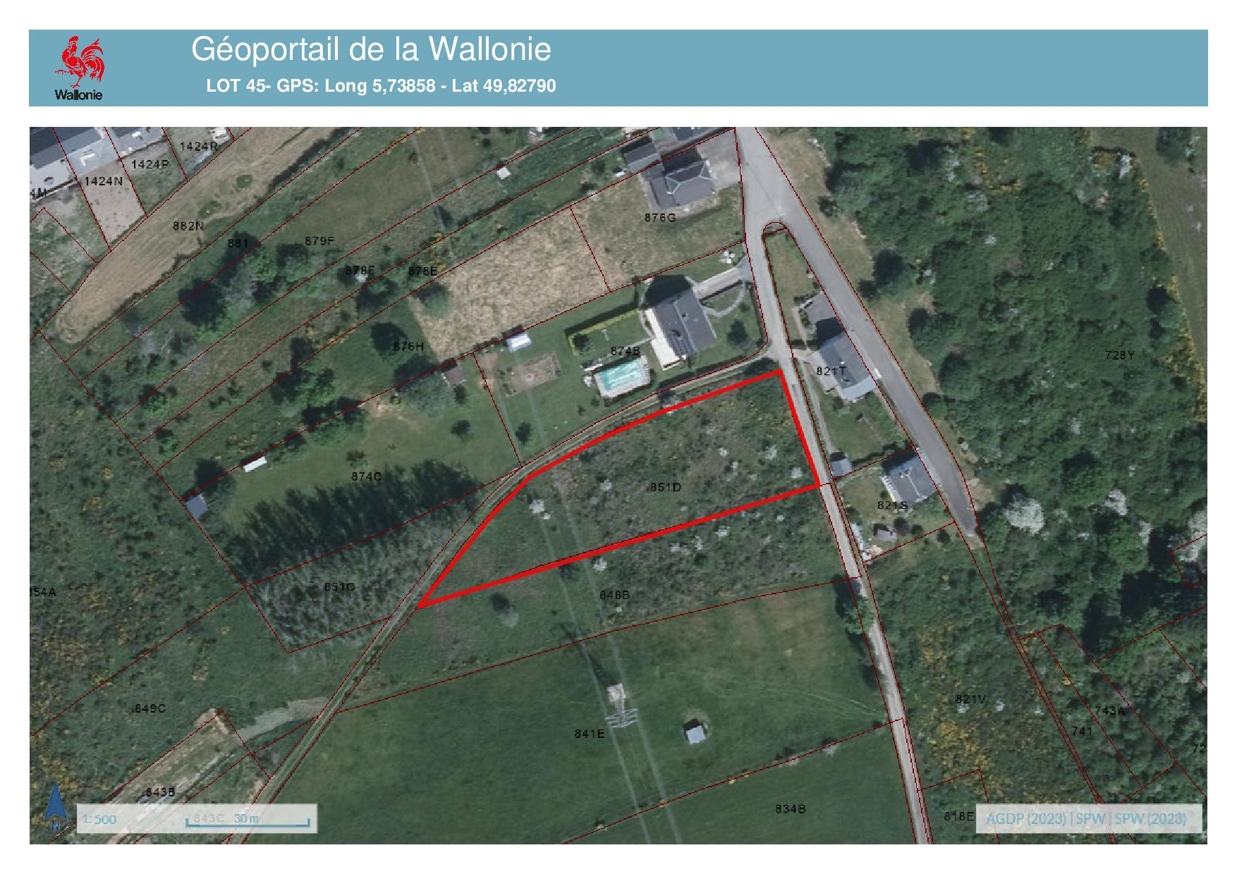 • n° 851 D de 0,2325 ha: +/- 9 ares en zone d’habitat et le solde en zone forestière