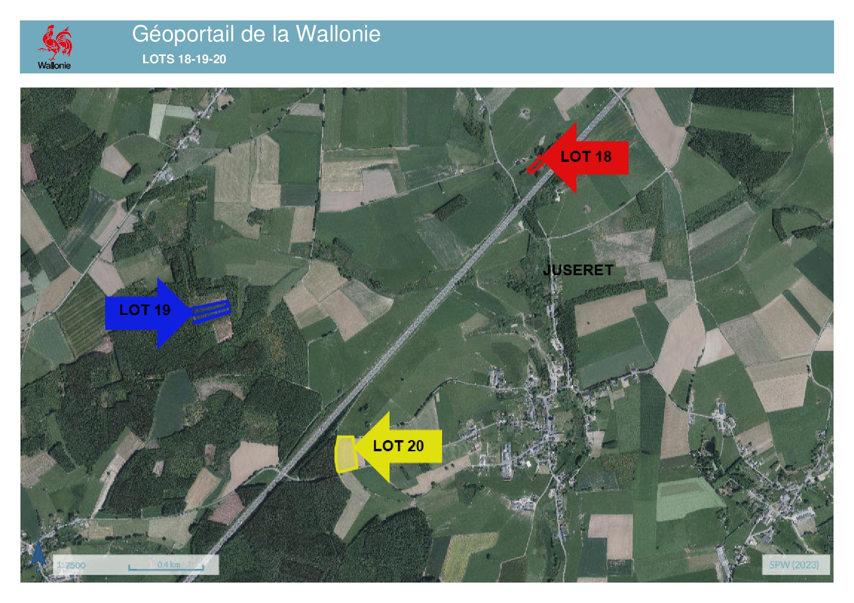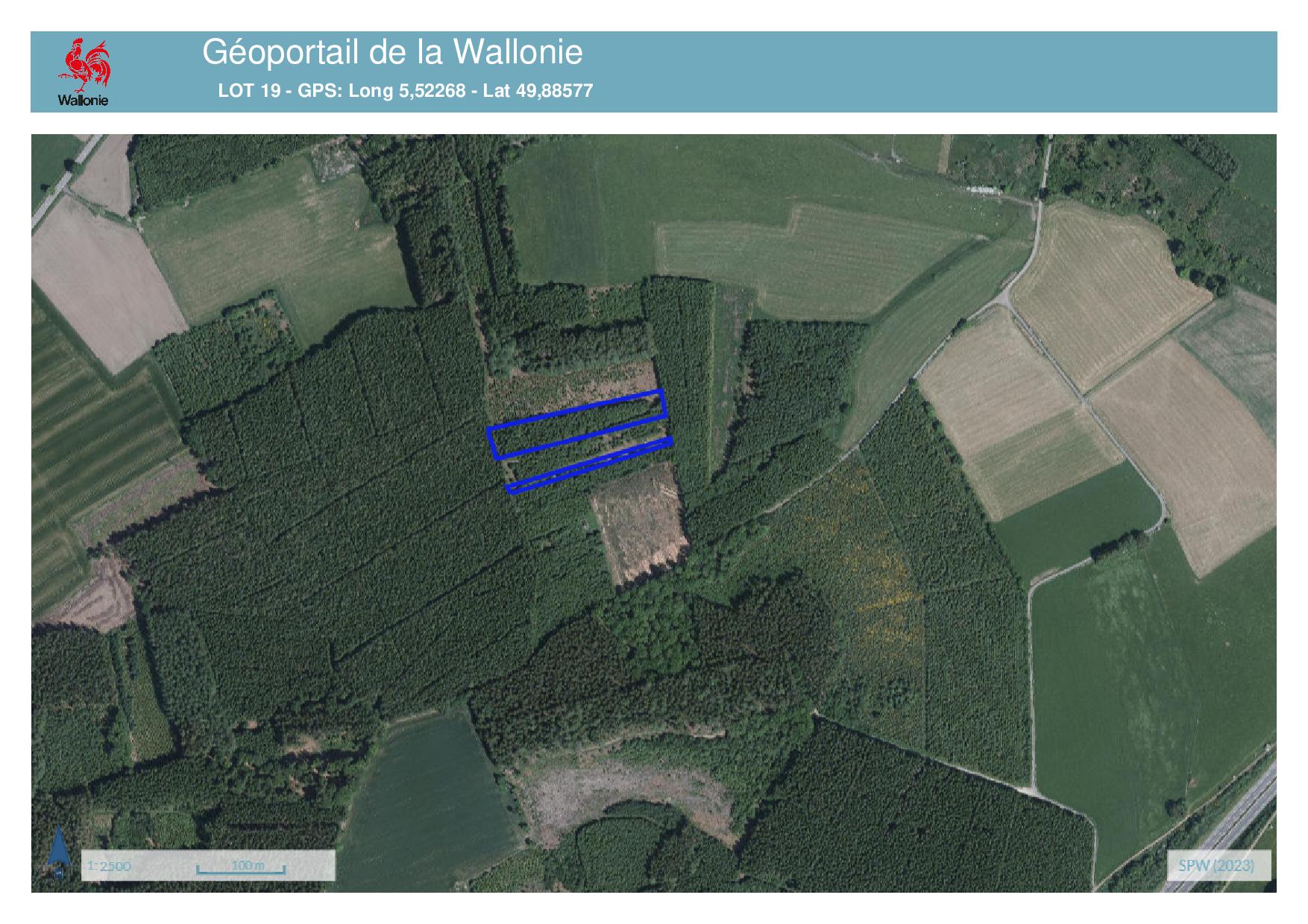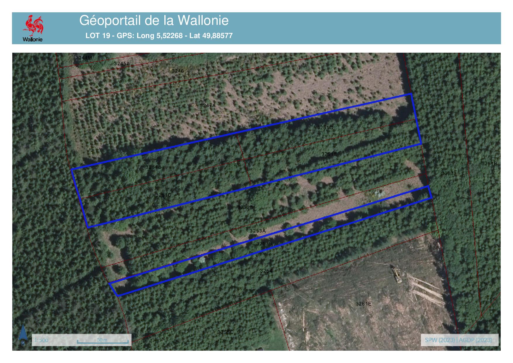 • n° 3251B, 3251D, 3251C, 3251E: superficie totale de 0,72 ha avec +/- 0,60 ha d’épicéas d’aspect 40 ans.