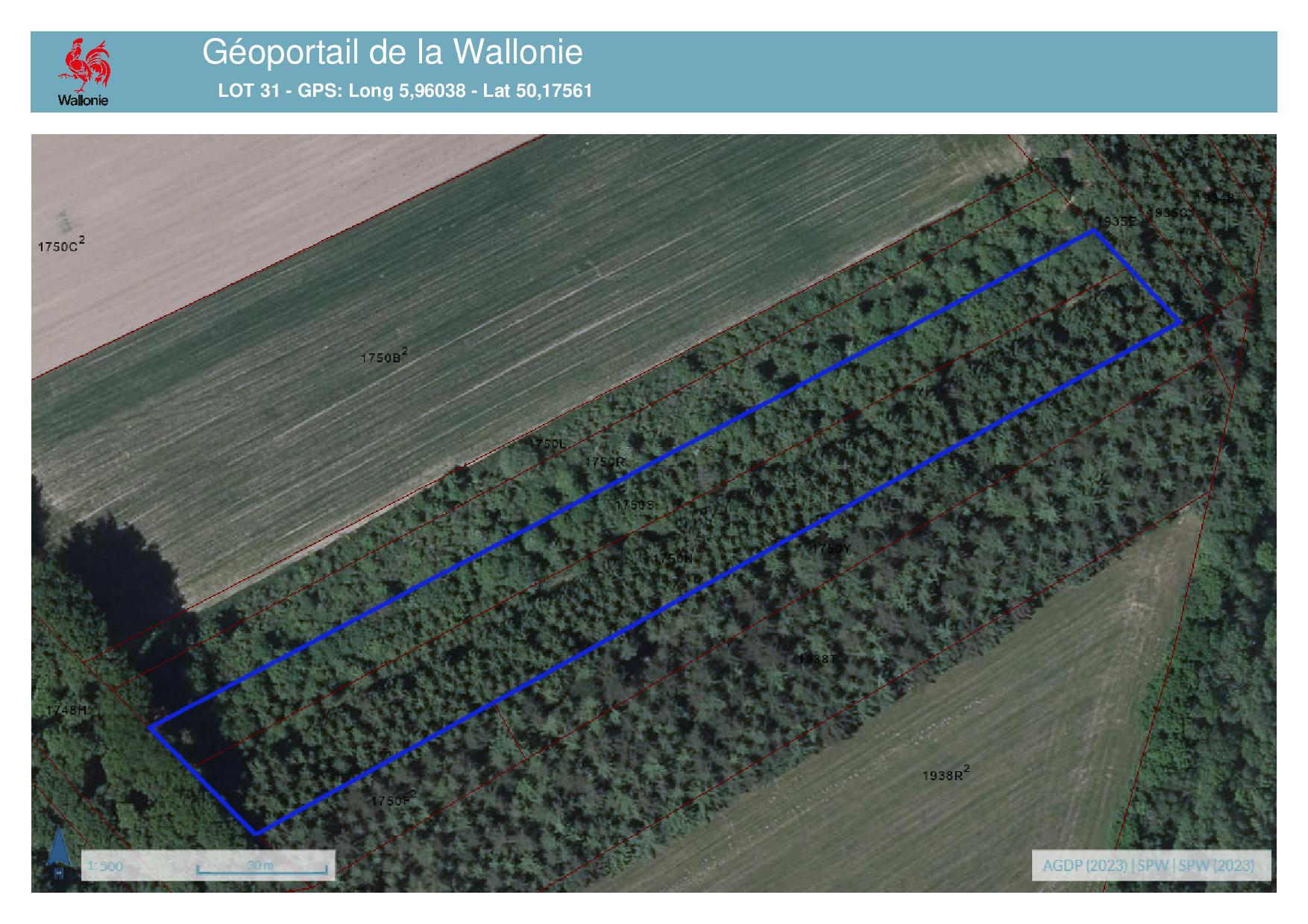 • n° 1750 S: 0,319 ha d’épicéas d’aspect 20 ans