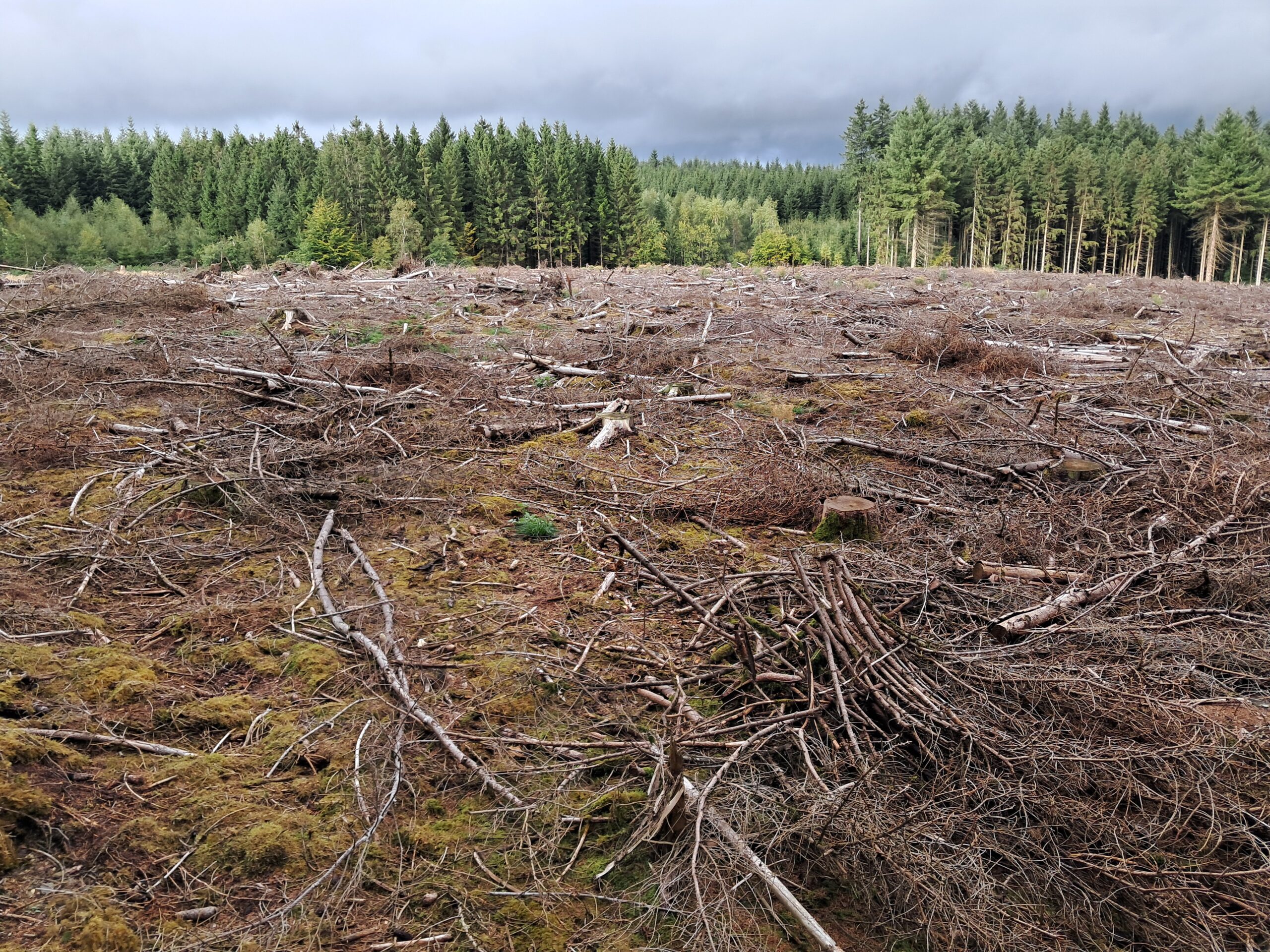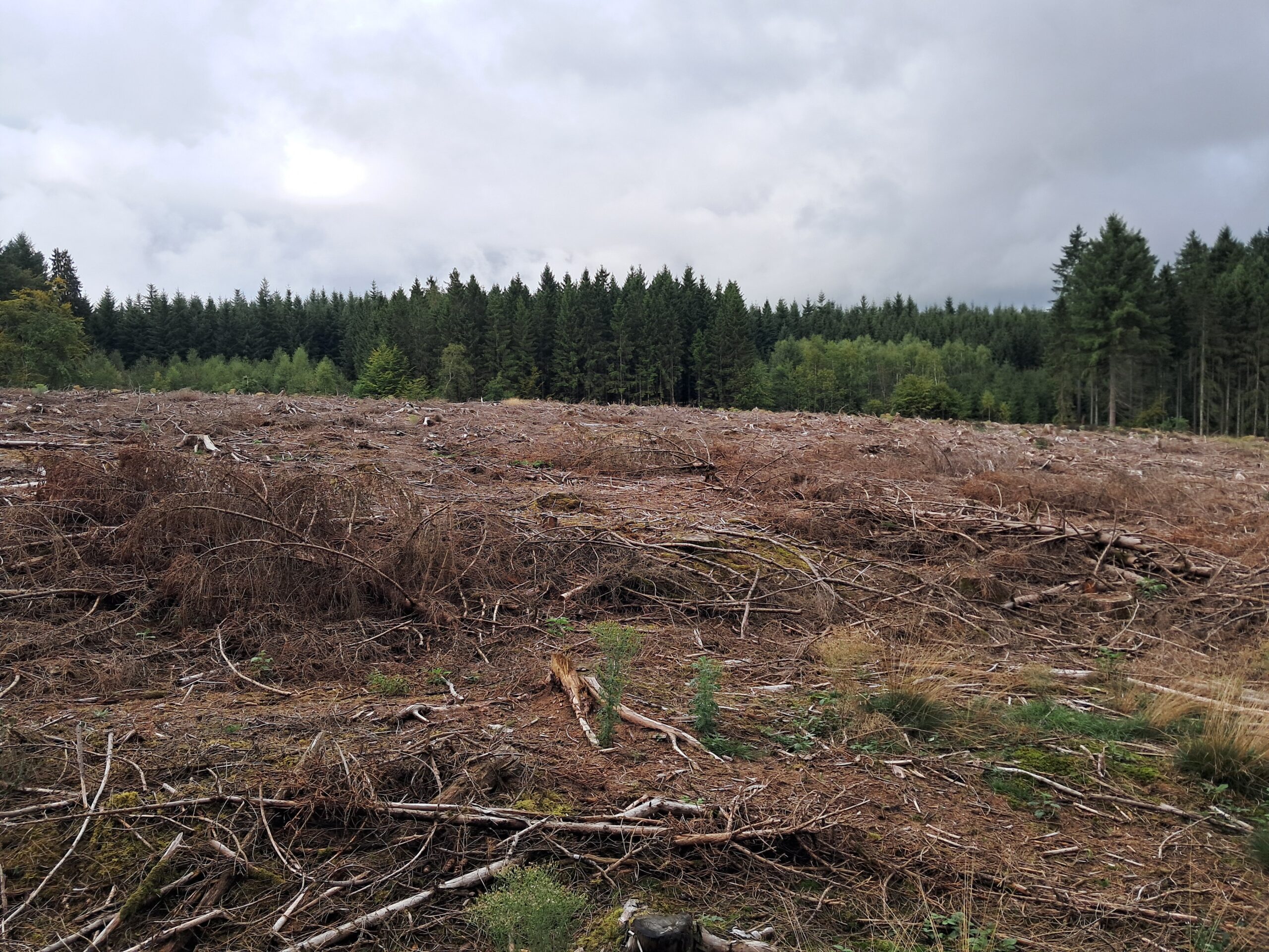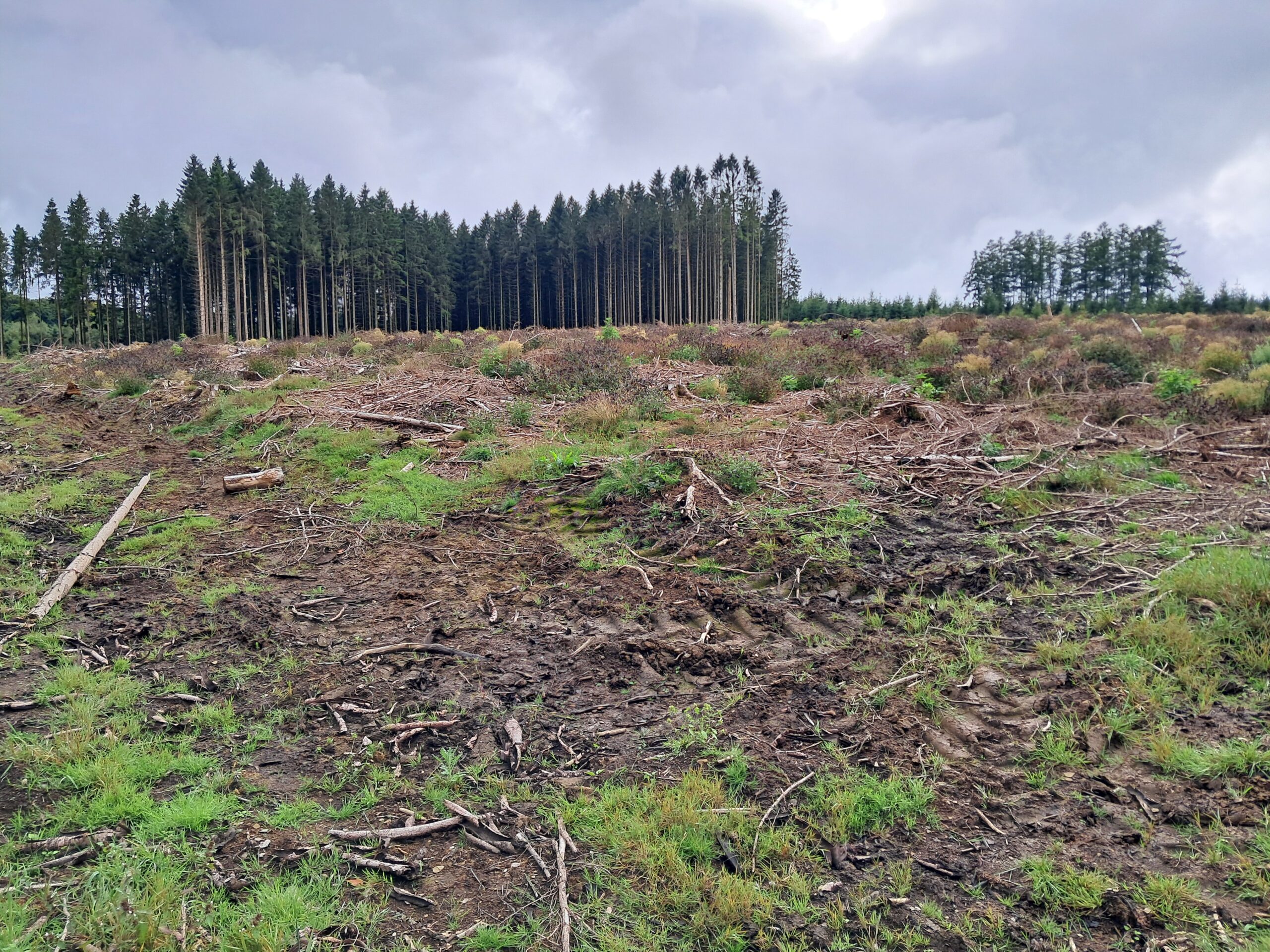 Fond de bois suite à une mise à blanc d’épicéas de 2024, situé à chemin empierré