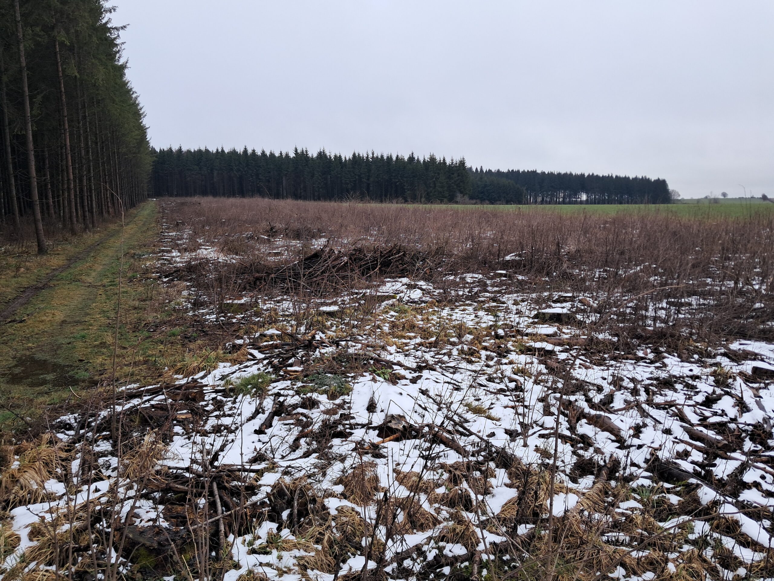 Lot situé à chemin, fond de bois, soit un terrain nu, déboisé, suite à une coupe rase d’épicéas en 2025.
