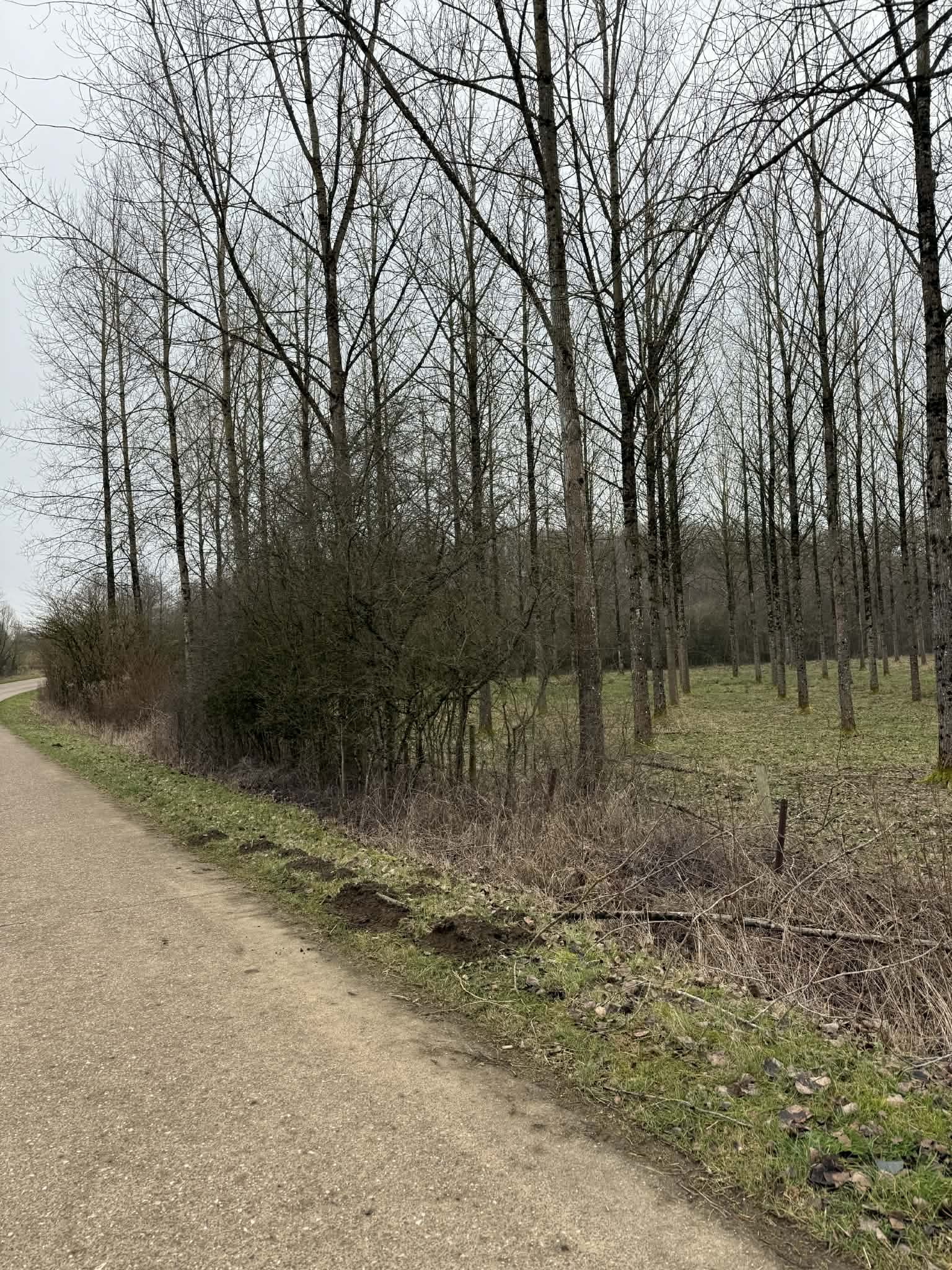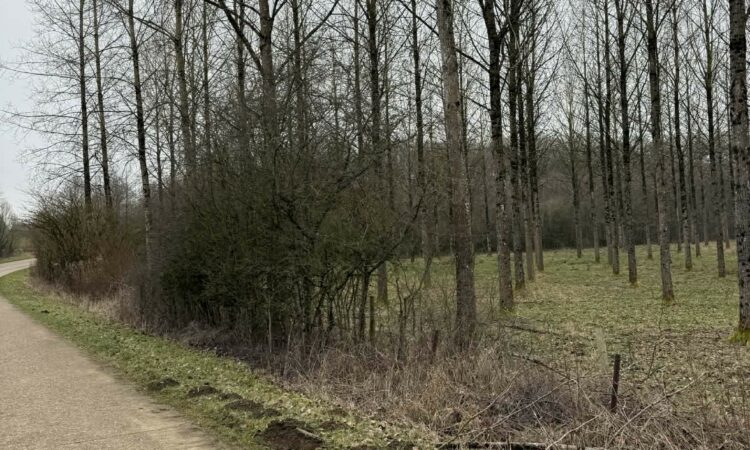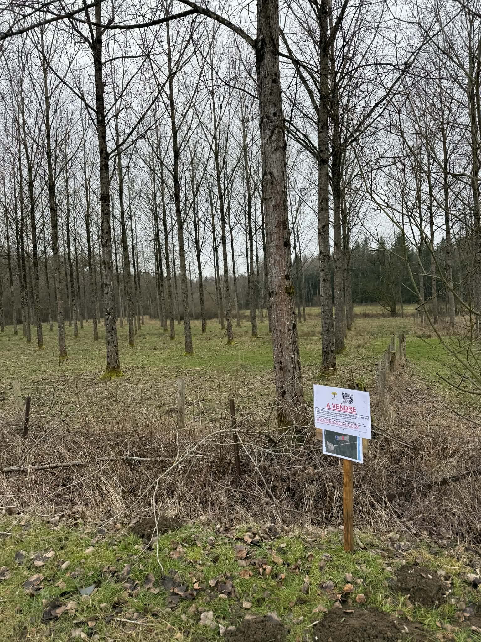 Lot agricole, pâture, à plat et à route, boisé de peupliers élagués, d’aspect 20 ans.