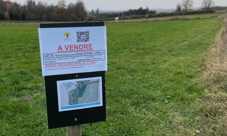 —Veuillez choisir une option— Ref. : Vielsalm, 1 ère Div. Vielsalm, Section I, n° 205 D, 205/2, 206 B, 207 C. Superficie totale cadastrée: 0,5664 ha - B-6690 VIELSALM, Route de la Hérongue (Belgique) Ref. : Libramont-Chevigny, 7 Div. Sainte-Marie Chevigny, Section C, n° 1001 A, 1003, 1025, 1023 B et 1002 E. Superficie totale cadastrée: 1,993 ha - B-6800 LIBRAMONT, Bernimont (Belgique) Ref. : Bastogne, 4 Div. Noville, Section B : n°1012 B et Section E: 0152 B - B-6600 BASTOGNE, Noville, Vaux (Belgique) Ref. : Bertrix, 1 ère Div. Bertrix, Section F, n° 172 B et 172 C. Superficie totale cadastrée: 1,469 ha - B-6880 BERTRIX, Auby-sur-Semois (Belgique) Ref. : Bertrix, 1 ère Div. Bertrix, Section F, n° 171 M et 171 P, superficie totale cadastrée: 1,152 ha - B-6880 BERTRIX, Auby-sur-Semois (Belgique) Ref. : Gouvy, 1 ère Div. Limerlé, Section C, n° 1737G, 1739A, 1740, 1742, 1746A, 1747. Superficie totale cadastrée: 1,7244 ha - B-6670 GOUVY, Steinbach (Belgique) Ref. : Virton, 3 Div. Ethe, Section B, n° 1254B, 1255B, 1256B, 1257B, 1258C, 1253B, 1250B, 1248B, 1246K - B-6760 VIRTON, Ethe, Rue du Château Cugnon (Belgique) Ref. : Fauvillers, 2 Div. Hollange, Section D, n° 422B, 338L, 341A, 342C, 343E, 345B, 353A, 363E, 372D, 374, 379F, 451, 452A, 461, 473C, 373B, 342B, 363G. Superficie totale estimée à +/- 20,265 ha. Lot soumis à un bail à ferme. La superficie de ce lot sera modifiée sur base d'un plan de bornage transmis ultérieurement. - B-6637 FAUVILLERS, Strainchamps, Rue des Troquettes (Belgique) Ref. : Bertrix, 3 Div. Cugnon, Section A, n° 0176 P0000. Superficie cadastrée: 1731 m2 - B-6880 BERTRIX, Cugnon, Les Illions (Belgique) Ref. : Vaux-sur-Sûre, 5 Div. Juseret, Section A, n° 2677 D et 2678 E - B-6642 VAUX-SUR-SURE, Bercheux (Belgique) Ref. : Vaux-sur-Sûre, 5 Div. Juseret, Section A, n° 3251B, 3251D, 3251C, 3251E, 3253B - B-6642 VAUX-SUR-SURE, Bercheux (Belgique) Ref. : Vaux-sur-Sûre, 5 Div. Juseret, Section B, n° 0102 G2; superficie cadastrée: 1,7768 ha. Lot occupé sous le régime de bail à ferme. - B-6642 VAUX-SUR-SURE, Juseret, Allée des Jardins (Belgique) Ref. : Lierneux, 1 Div. Lierneux, Section C, n° 18E, 18F, 18H, 18K. - B-4990 LIERNEUX, Verleumont (Belgique) Ref. : Martelange, Section C, n° 32D, 32C, 31B, 34A, 38B, 178E, 178G, 178B. Superficie totale cadastrée: 2,7061 ha - B-6630 MARTELANGE, Impasse de la Route de Bastogne (Belgique) Ref. : Aubange, 4 Div. Rachecourt, Section A, n° 92 et 93. Superficie totale cadastrée: 0,587 ha - B-6792 AUBANGE, Rachecourt (Belgique) Ref. : Commune d'Aubange 3 ème Div. Halanzy, Section A: n° 204 - 4 ème Div. Rachecourt, Section B: n° 683A, 685B, 685C, 686, 690B. Superficie totale cadastrée: 1,825 ha - B-6792 AUBANGE, Rachecourt (Belgique) Ref. : La Roche-en-Ardenne, 2 ème Div. Beausaint, Section C, n° 755 A. Superficie cadastrée: 0,379 ha - B-6980 LA ROCHE-EN-ARDENNE, Ronchamps (Belgique) Ref. : Ferrières, 1 ère Div. Ferrières, Section C, n° 900, 901, 902A, 903A, 903B, 904A, 905, 906A. Superficie totale cadastrée: 0,798 ha - B-4190 FERRIERES, Pré du Fa (Belgique) Ref. : Libin, 7 ème Div. Villance, Section A, n° 1794V et 1794 W. Superficie totale cadastrée: 1,94 ha - B-6890 LIBIN, Transinne, ZI le Cerisier (Belgique) Ref. : Libin, 7 Div. Villance, Section A, n° 1804 F4. Superficie totale cadastrée: 1,444 ha - B-6890 LIBIN, Villance (Belgique) Ref. : Bièvre, 1 ère Div. Bièvre, Section C, n° 70 E2 - B-5555 BIEVRE (Belgique) Ref. : Gouvy, 1 ère Div. Limerlé Section B: lieu dit: "Petite Bras": n° 807 de 0,101 ha et n° 811 de 0,0082 ha Section C: lieu dit: "Grosse Bras": n° 14 de 0,103 et n° 17 B de 0,096 ha. Superficie totale cadastrée: 0,3082 ha - B-6670 GOUVY, Steinbach (Belgique) Ref. : Gouvy, 1ère Div. Limerlé, Section C, n° 1385. Superficie totale cadastrée: 0,231 ha - B-6670 GOUVY, Steinbach (Belgique) Ref. : Neufchâteau, 5 Div. Longlier, Section, n° 16, superficie de 0,365 ha. Lot concerné par un droit de préemption. - B-6840 NEUFCHATEAU, Massul, Route d'Ebly (Belgique) Ref. : Neufchateau, 5 Div. Longlier, Section A, n° 437 A, superficie cadastrée: 1,026 ha. Lot soumis à un droit de préemption - B-6840 NEUFCHATEAU, Massul, Route d'Ebly (Belgique) Ref. : Neufchâteau, 5 Div. Longlier, Section A, n° 475 N; superficie cadastrée de 0,851 ha. Lot soumis à un droit de préemption - B-6840 NEUFCHATEAU, Massul, Route d'Ebly (Belgique) Ref. : Neufchâteau, 5 Div. Longlier, Section A, n° 584 A; superficie cadastrée de 0,503 ha. Lot soumis à un droit de préemption - B-6840 NEUFCHATEAU, Massul (Belgique) Ref. : Neufchâteau, 5 Div. Longlier, Section A, n° 147 A, superficie cadastrée: 0,368 ha. Lot soumis à un droit de préemption - B-6840 NEUFCHATEAU, Massul (Belgique) Ref. : Neufchâteau, 5 Div. Longlier, Section C, n° 802 H. Superficie cadastrée: 0,398 ha. Lot soumis à un droit de préemption - B-6840 NEUFCHATEAU, La Croix de l'Homme (Belgique) Ref. : Marche-en-Famenne, 6 Div. Roy, Section A, n° 23 B; superficie cadastrée: 0,1981 ha - B-6900 MARCHE-EN-FAMENNE, Grimbiémont (Belgique) Ref. : Marche-en-Famenne, 7 Div. Waha, Section A, n° 949 F; superficie cadastrée: 0,181 ha - B-6900 MARCHE, Verdenne, Rue de la Sergenterie (Belgique) Ref. : Commune de Bastogne 1 ère Div. Bastogne, section G: n° 480 C (0,294 ha) 9 ème Div. Longchamps, section E: n° 328 E (1,071 ha), 328 F (0,067 ha), 332 (0,248 ha) Libre d'occupation à la signature de l'acte RC total non indexé: 51 €. Superficie totale cadastrée: 1,68 ha - B-6600 BASTOGNE, Mande St Etienne/Senonchamps (Belgique) Ref. : Houffalize, 1 ère Div. Houffalize, Section A n° 1102 B, n° 961, 966B, 963, 967B, Superficie totale cadastrée: 3,826 ha - B-6660 HOUFFALIZE (Belgique) Ref. : Virton, 2 ème Div. Bleid, Section A n° 122 A de 13 ares 79 ca n° 104 A de 34 ares 02 ca n° 106 A de 3 ares 84 ca n° 1811 C de 14 ares 37 ca. Lot indivisible d'une superficie totale de 0,6602 ha - B-6760 VIRTON, Bleid (