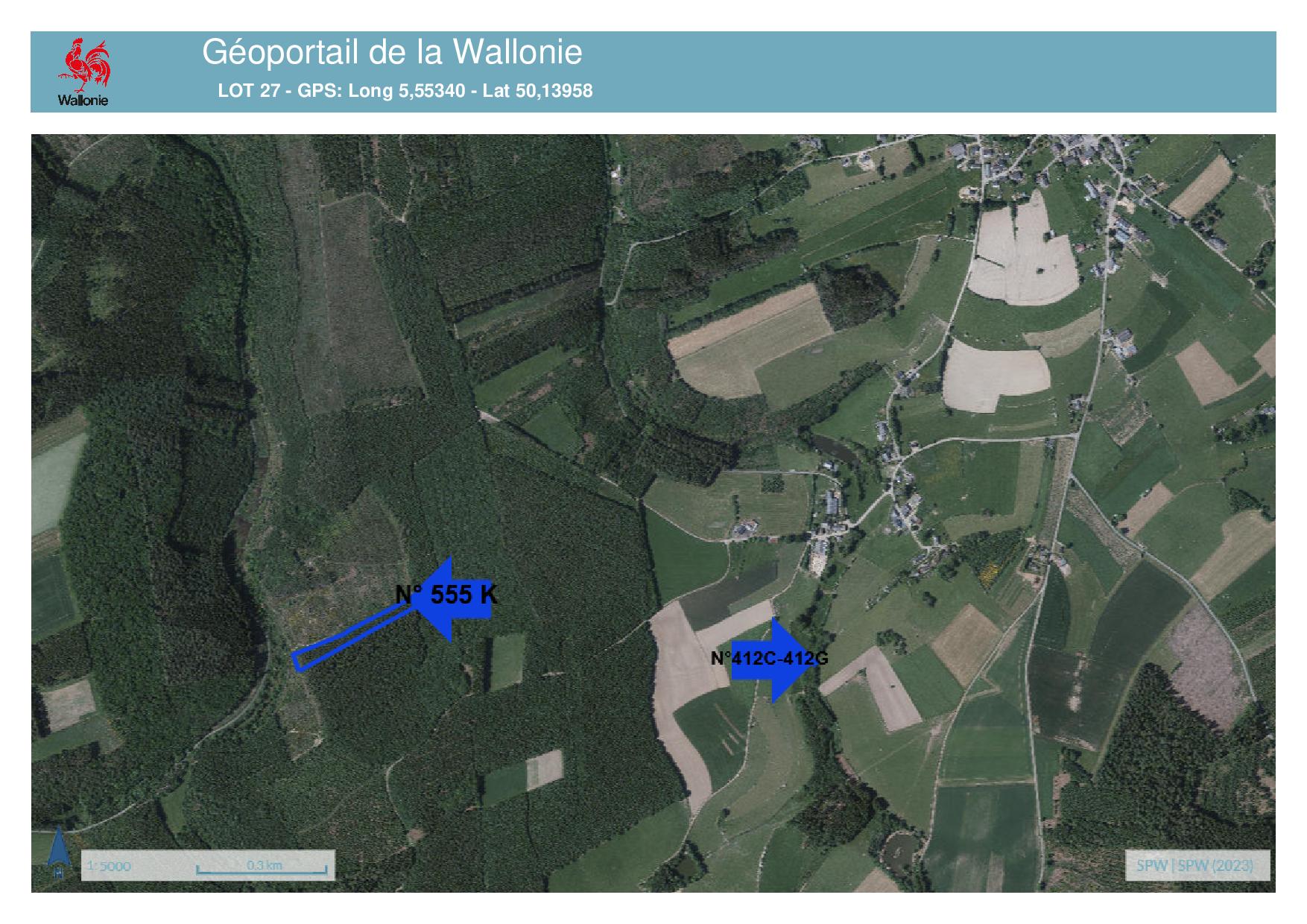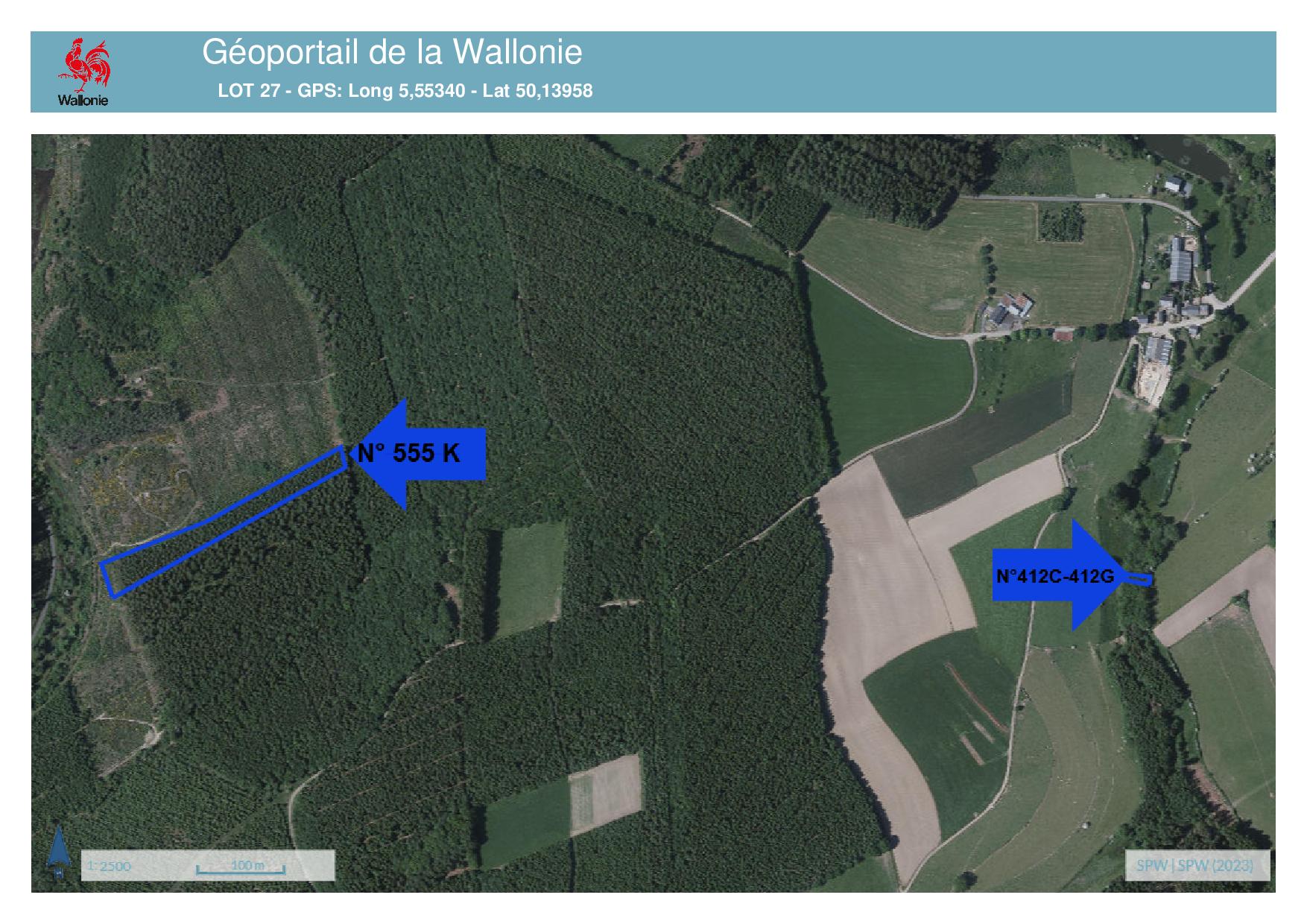 - n° 555 K « Han des Vais » : un fond de bois (terrain nu, déboisé) de 0,919 ha suite à une mise à blanc d’épicéas de 2025