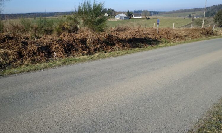 Terrain forestier à plat, situé à route. Lot nu, déboisé, fond de bois suite à une mise à blanc d’épicéas réalisée en 2022.