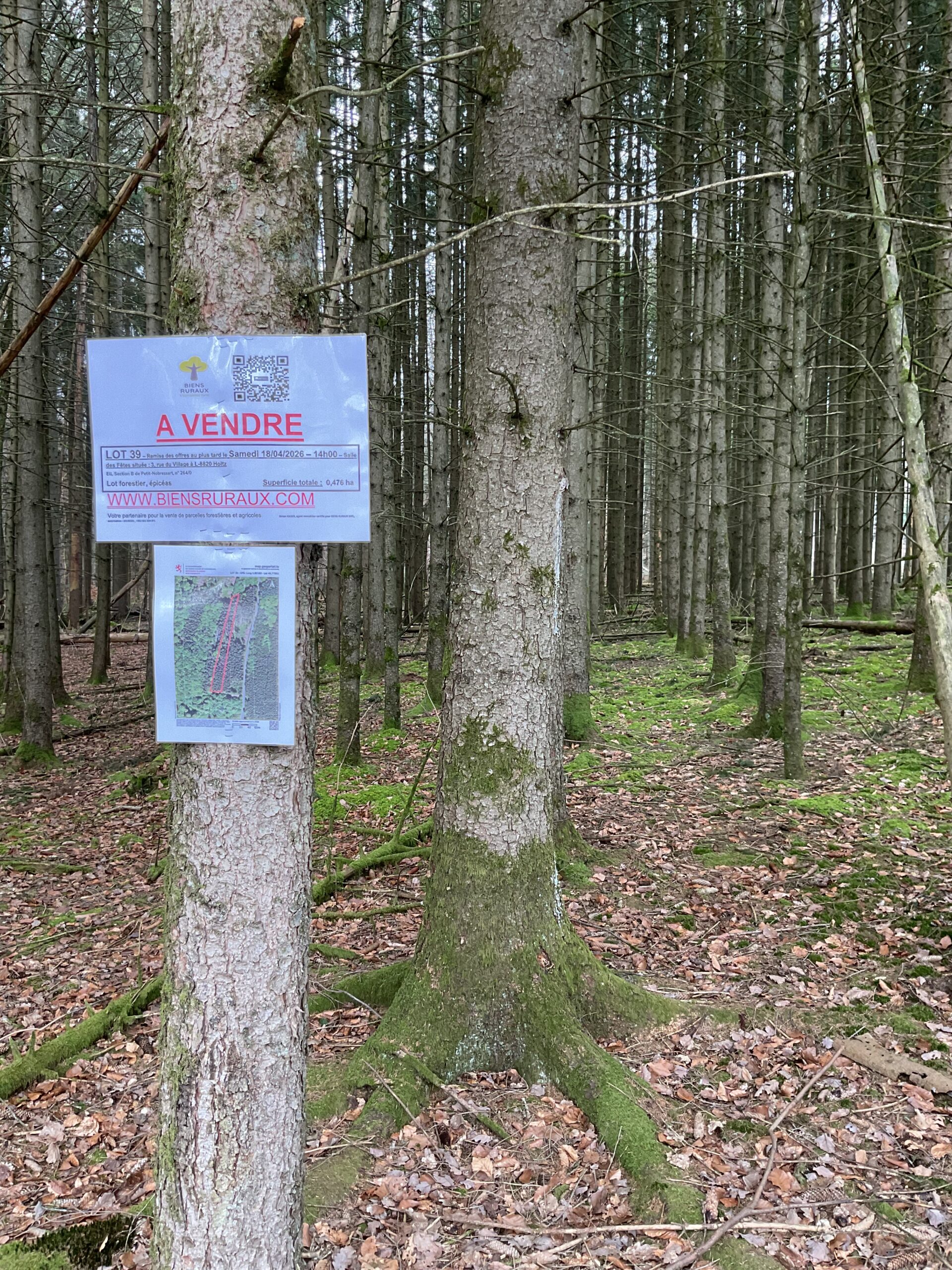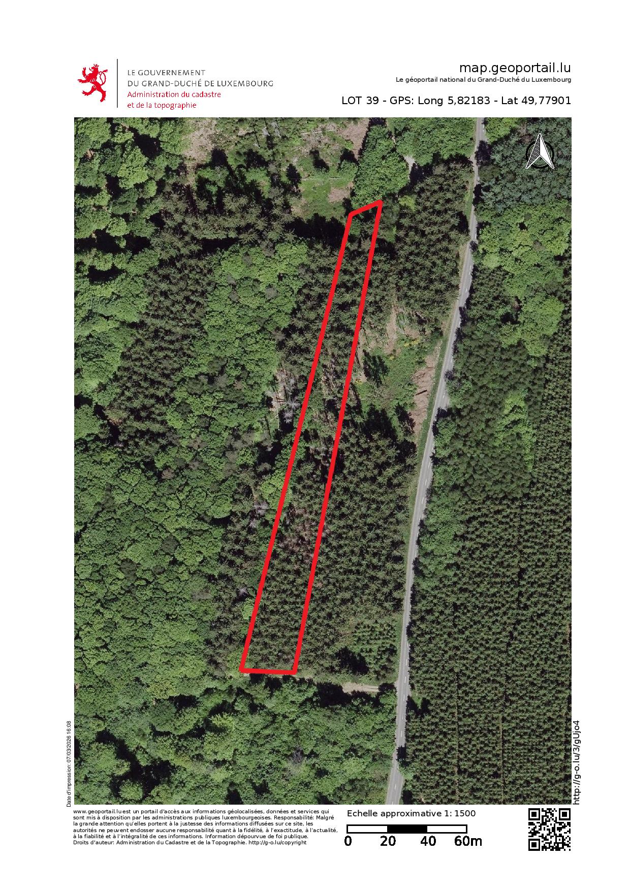 Lot forestier à plat, facilement accessible via 1 chemin au sud et 1 chemin au nord du lot