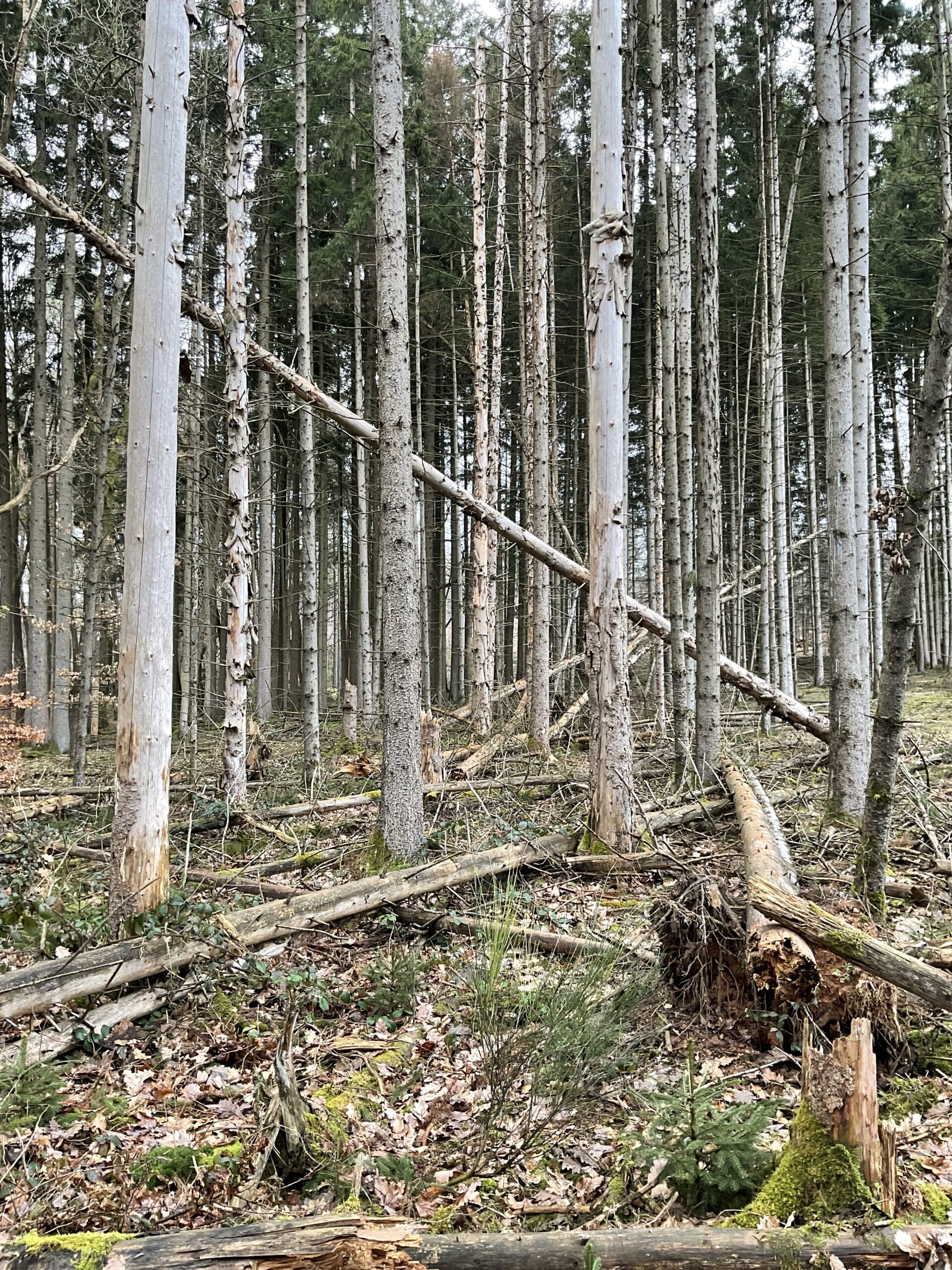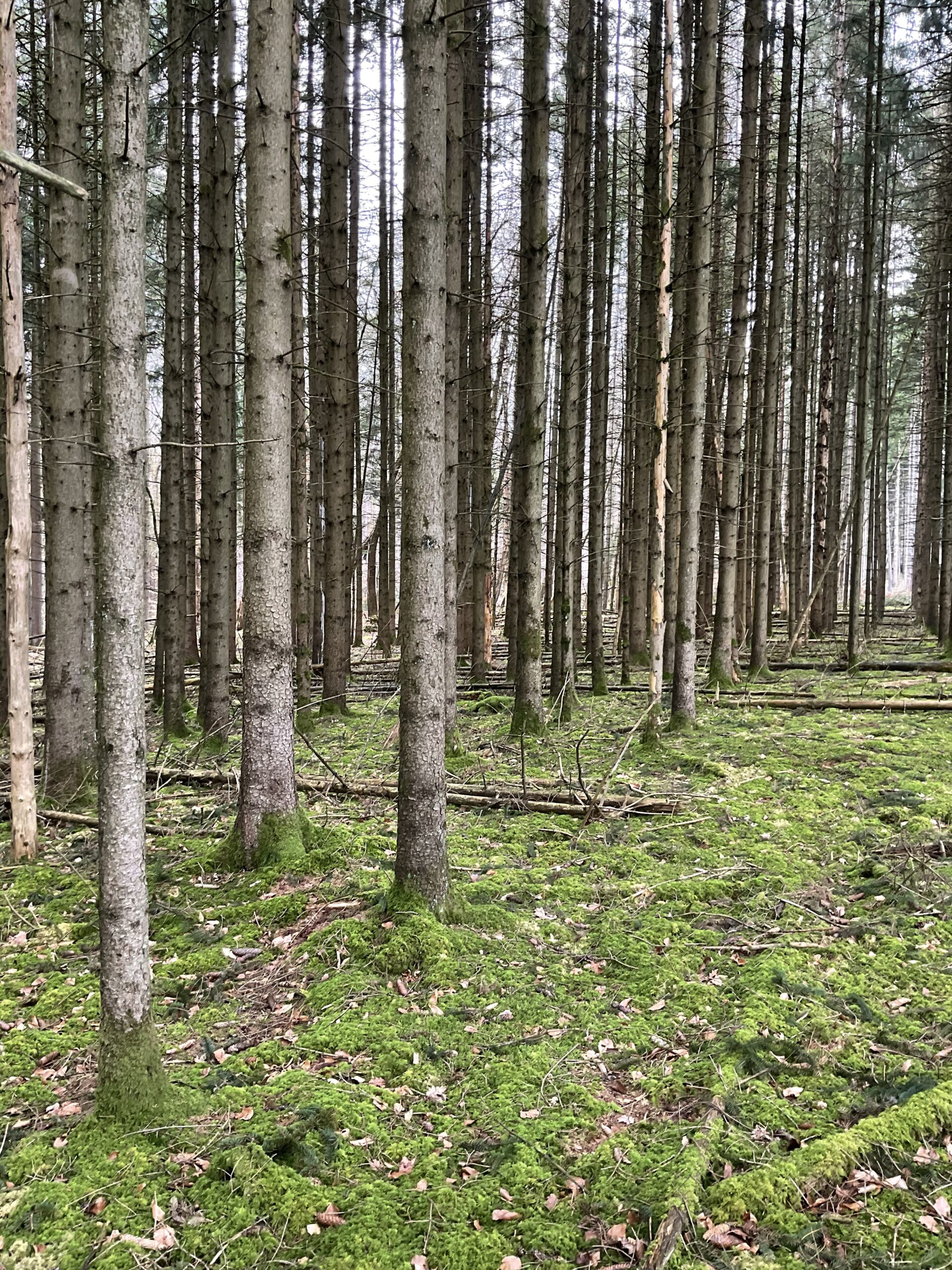 Epicéas d'aspect 40 ans (+/ 65 % d'épicéas verts et +/- 35 % d'épicéas bostryches)